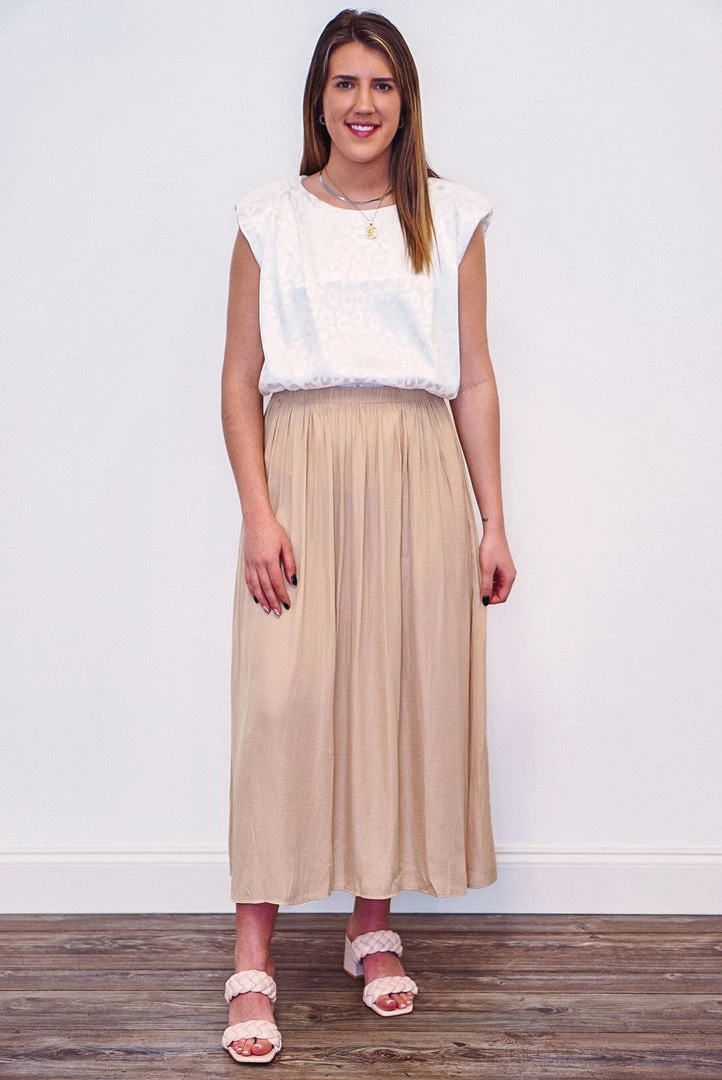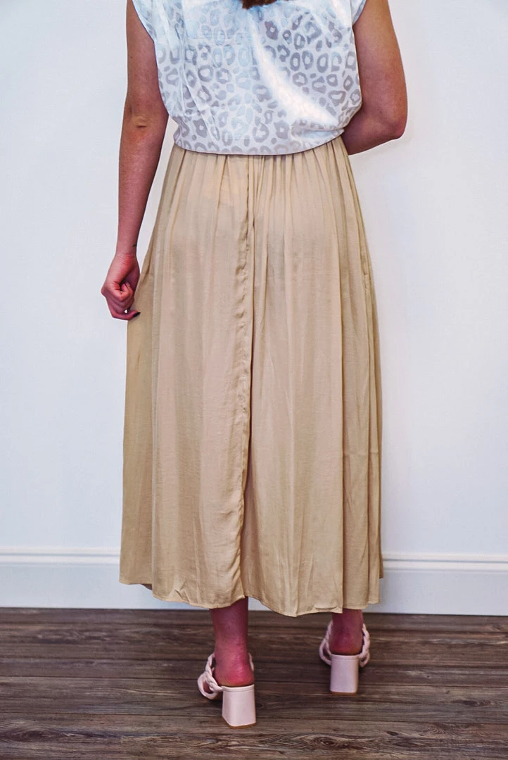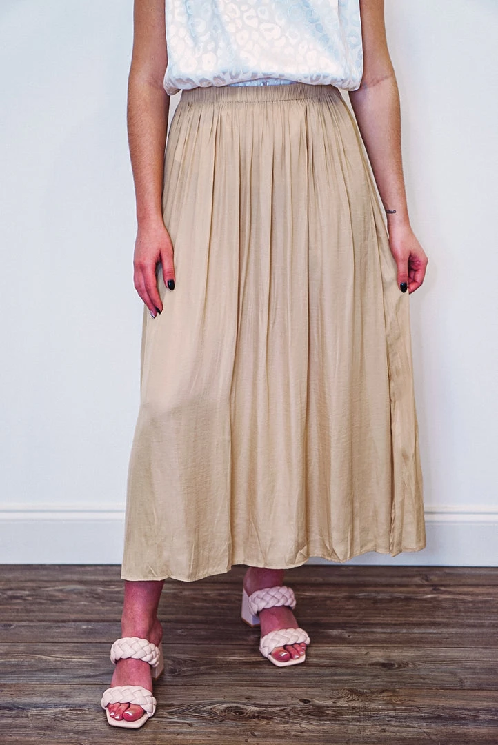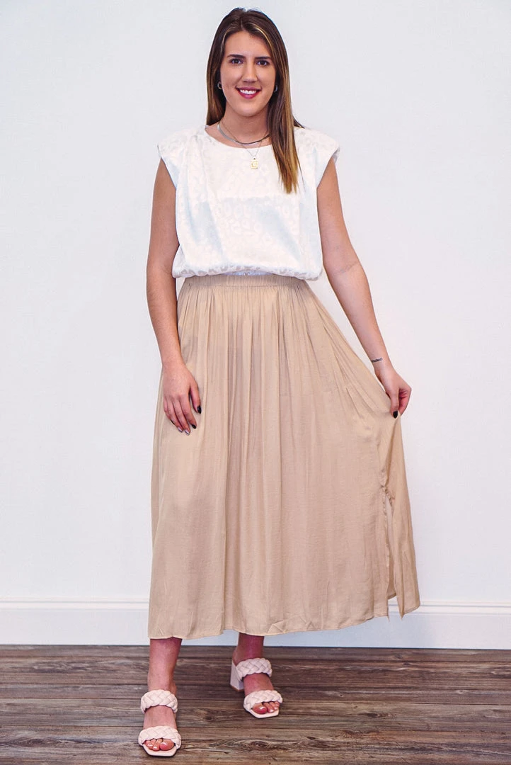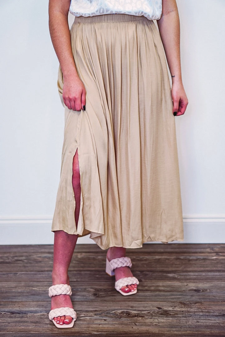 Taupe a-line maxi skirt with side slits