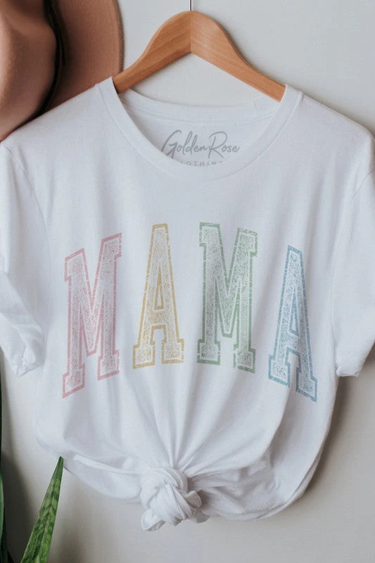 What a fun and sweet retro graphic tee! Oversized fit in vintage white with heavy distressed multi-color mama lettering. Just too CUTE!!