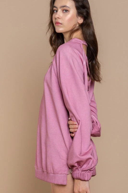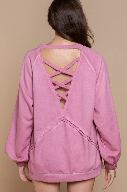 We are having all the feels for this plum french terry top! So comfy, and super cute, featuring our favorite mineral washed fabric, relaxed fit, raw hemline details, and a slit at the bottom hemline on each side. This babe has a sweatshirt feel, with a twist! Open V cut out down the back with criss cross straps! Casual, yet chic! You will love how great you feel in this babe, whether running errands, or enjoying a bonfire with friends.