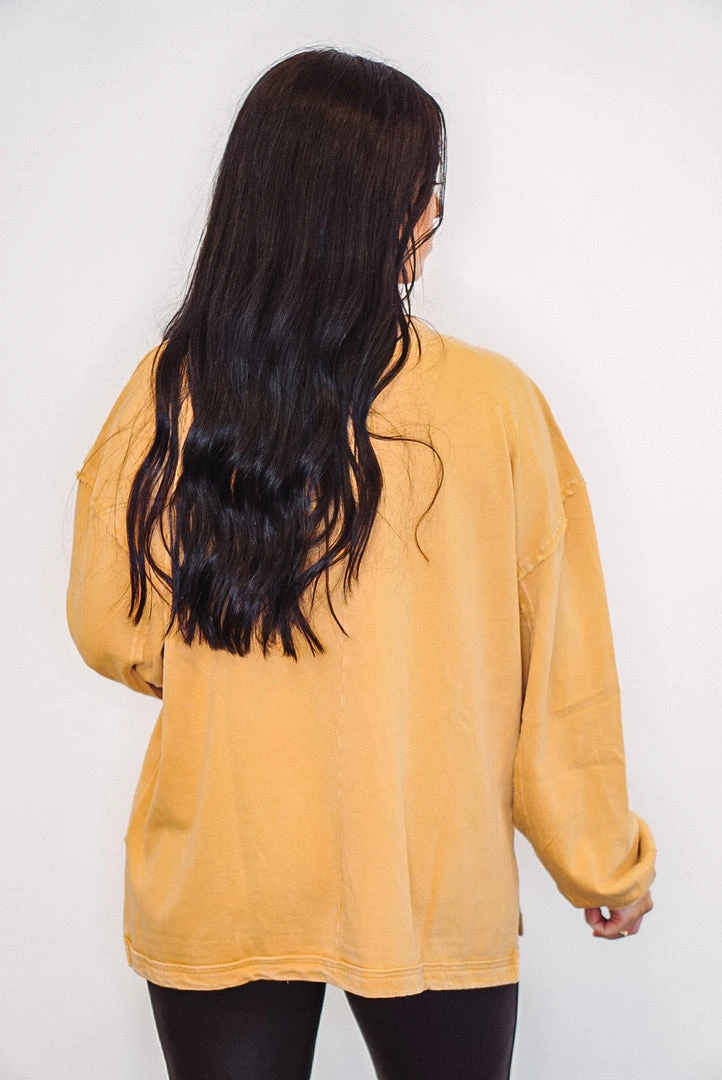 We are having all the love for this knit pullover top! So comfy, and super cute, featuring mineral washed mustard knit, crew neckline, raw seam details, cuffed long sleeves, and side slits in the bottom hemline for added comfort. You will love how great you feel in this babe, while running errands, hanging out with friends, or enjoying a much deserved day off. Soon to be your new favorite go-to!