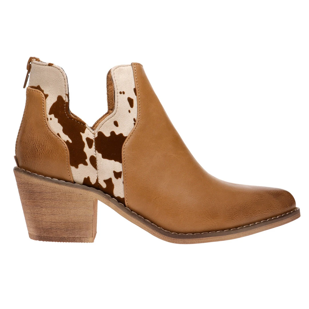 We are in love with these oh so cute cowgirl boots! The perfect bootie you can wear year around and for any occasion!! Did we say how much we love the fun cow print??Easily paired with your favorite graphic tees and denim or a cute dress. So cute and comfy… back zipper for easy pull on style.