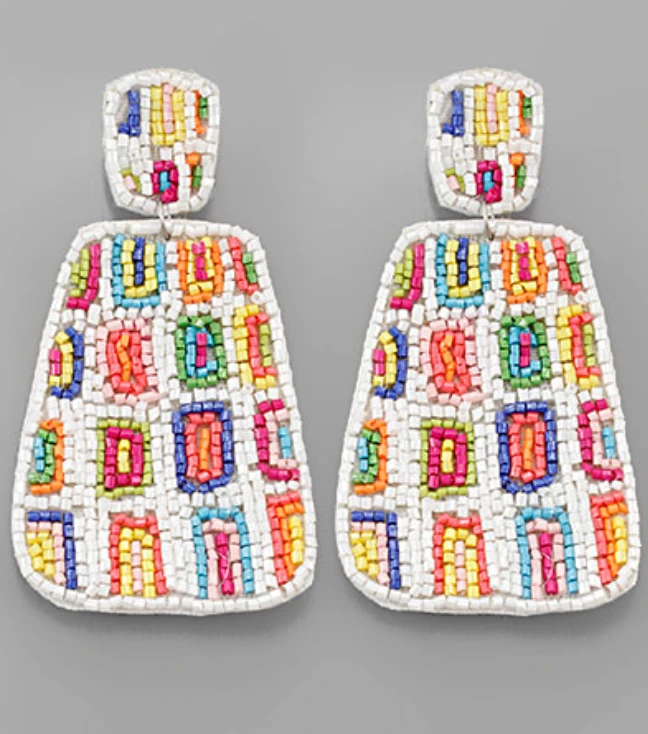 Beaded earrings are a must have this season! We are loving the white multi colored and you can wear them with everything!