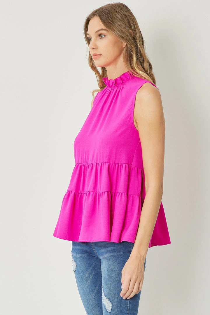 Hot pink tiered mock neck blouse