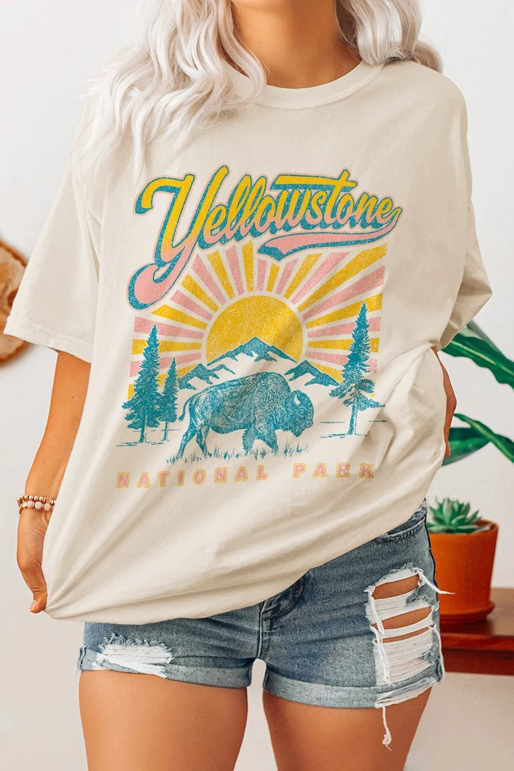 What a fun graphic tee! Pair with your biker shorts and sneakers for the ultimate cute comfy spring and summer outfit. Oversized fit in vintage white