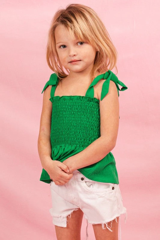 Youth smocked peplum top in kelly green