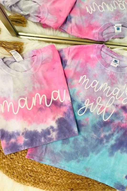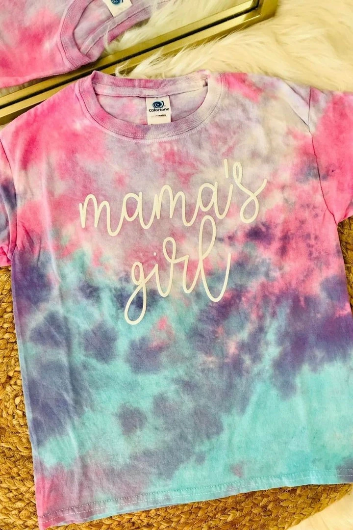Mama’s girl tie dye kids shirt…how adorable! You must have the matching ‘Mama’ graphic tee here!