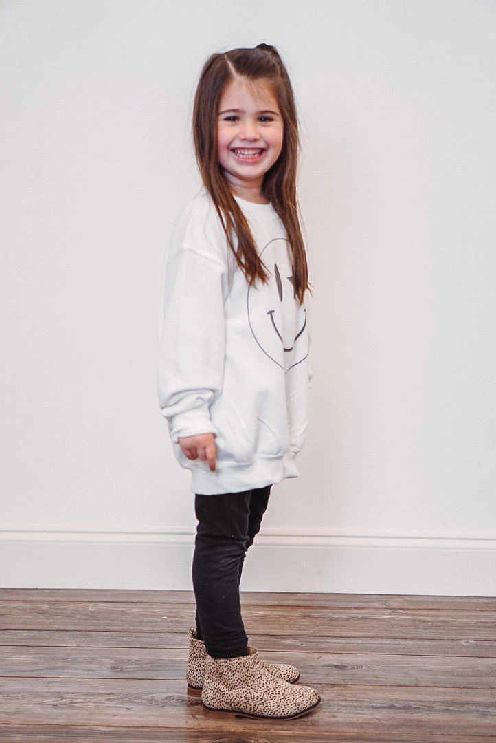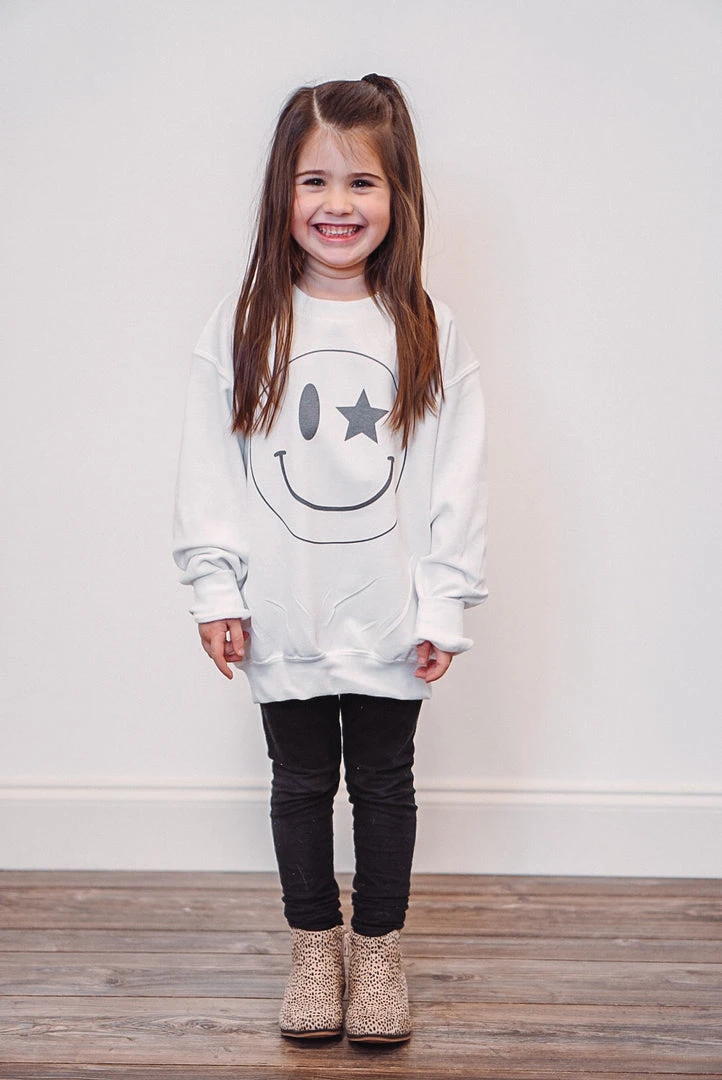 youth star smiley face white sweatshirt