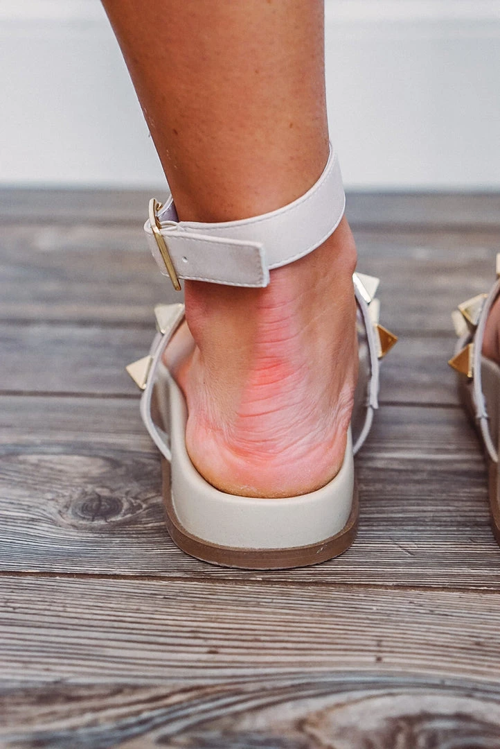 The perfect sandal to transition into early fall…so cute with shorts, dresses or your favorite jeans. So easy to dress up or down, either way you’re going to love these cuties! Vegan leather sandals feature a thick strappy styling and embellished pyramid studs.