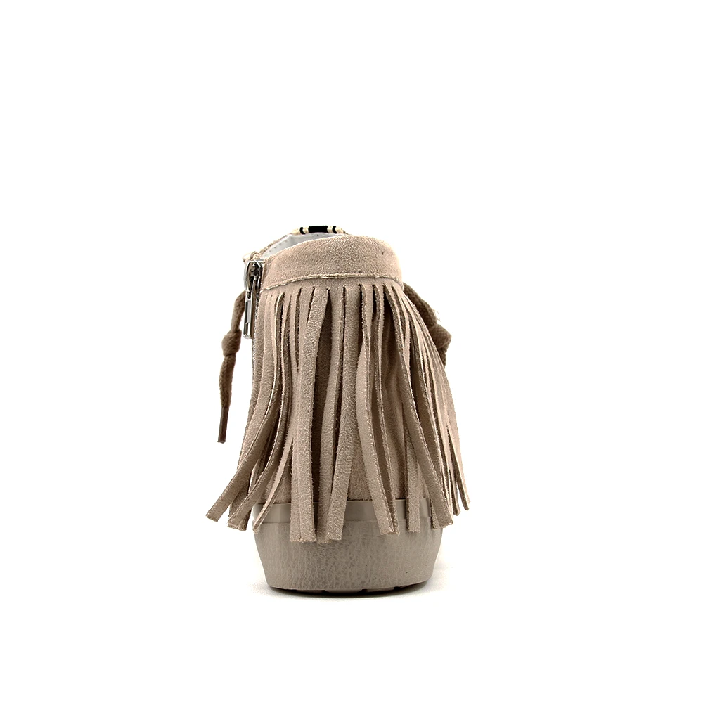 RUTH is inspired by classic vintage high top sneakers. This stylish pair has been updated with an added back fringe detail. Crafted from soft faux suede, RUTH will work great with all your favorite outfits!