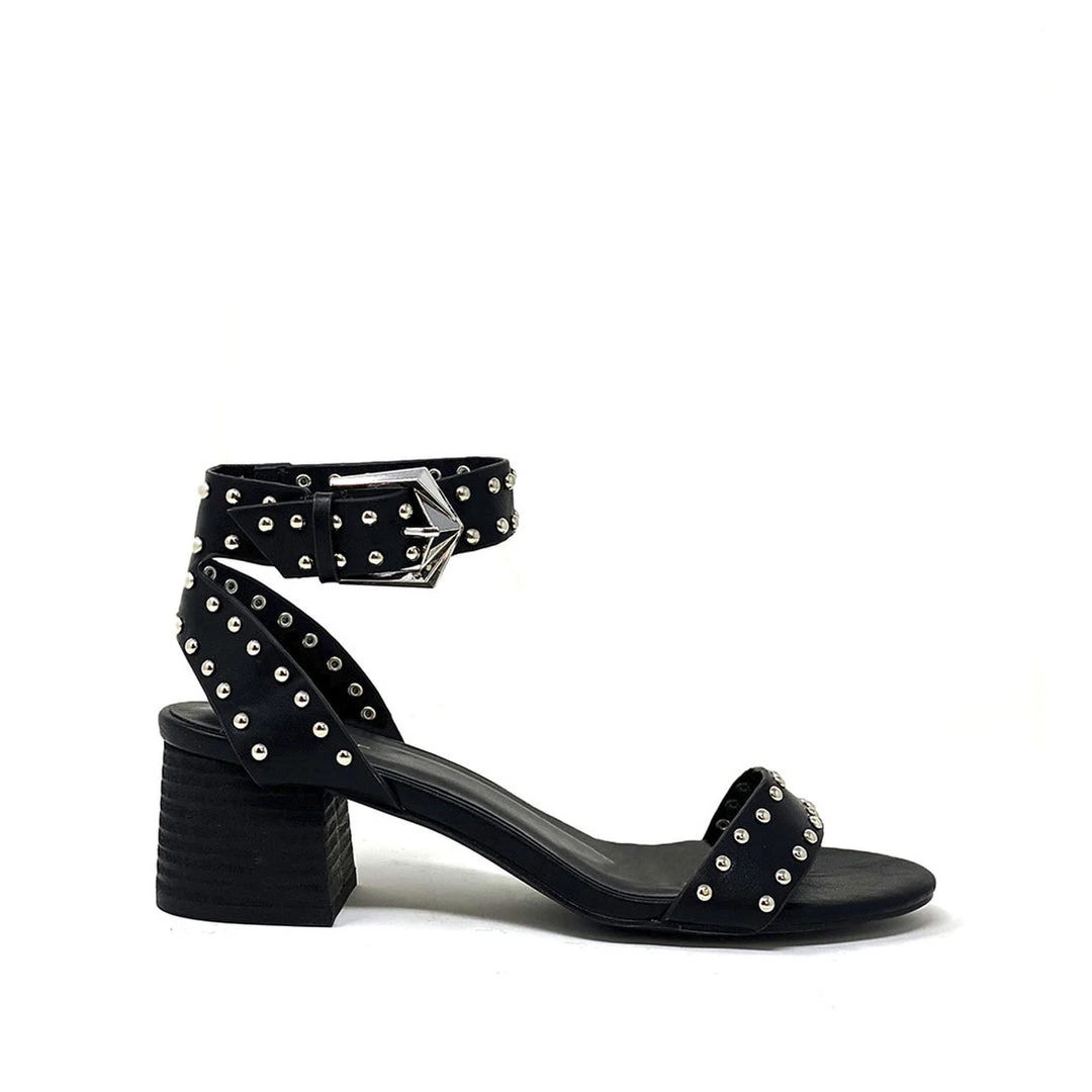 These black studded sandals are a must have this season. These heels feature a single strap across the front , single ankle strap and beautiful gold studded accents.