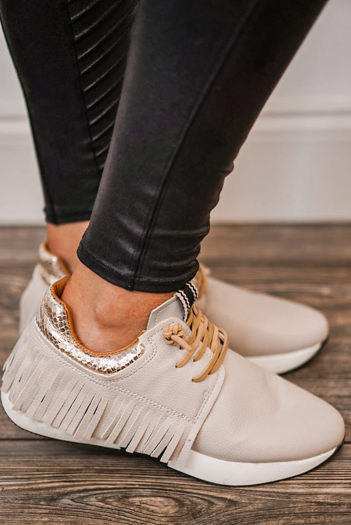 Shu Shop Pepa fringe faux leather beige sneaker