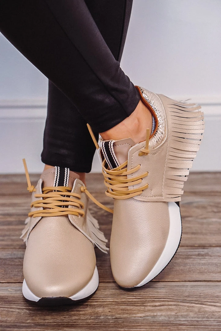 The sneaker we’ve all been waiting on! Wear these comfy babes all year long. So easy to dress up and down and will most definitely be your new go-to sneaker! This trendy athleisure sneaker is crafted from super soft faux leather and is finished with a fringe detail at the heel.