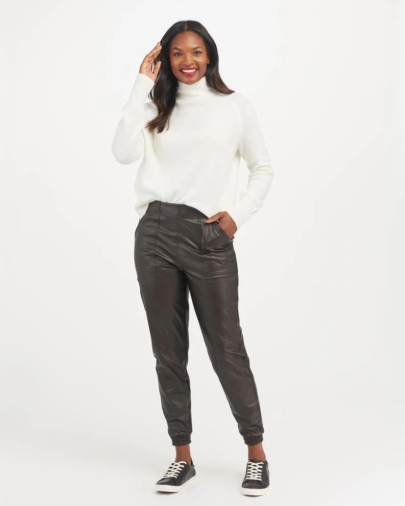 The Leather-Like Jogger is sure to be a new staple in your wardrobe. Leather-like fabric is more structured and gives you the look of true leather, without sacrificing comfort. You won’t just “like” them… you’ll love them!
