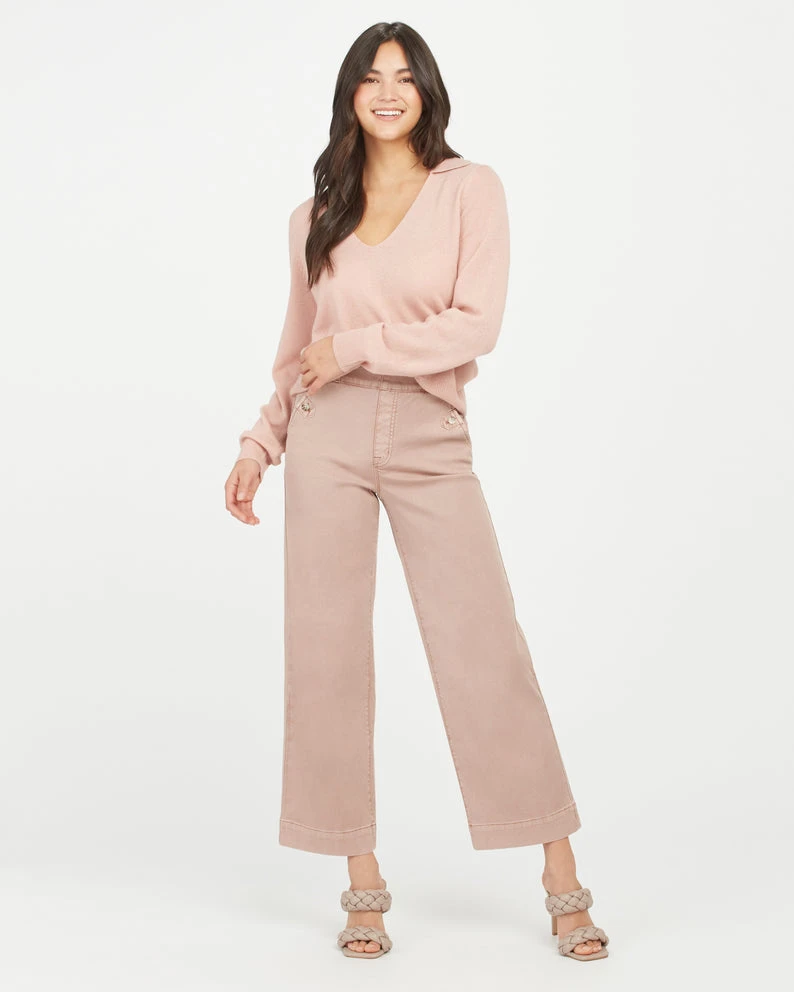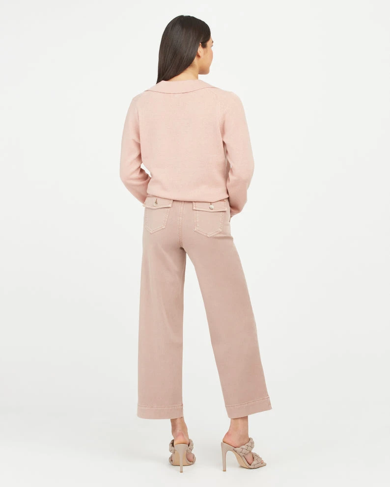 Spanx mauve twill cropped wide leg pants