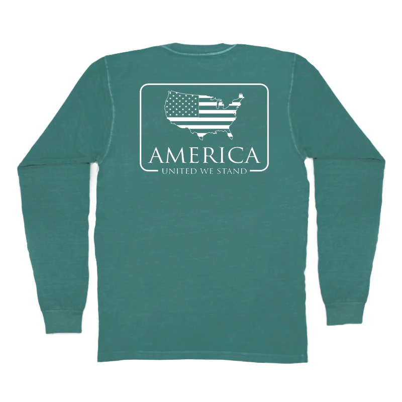 T-Shirts Peach State Pride ‘American Patch’ Long Sleeve – Emerald