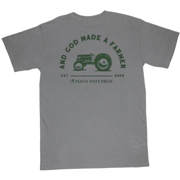 The Peach State Pride cotton short sleeve pocket t-shirt with a classic fit featuring the And God Made A Farmer design.