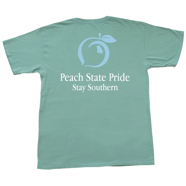 The Peach State Pride youth cotton short sleeve pocket t-shirt with a classic fit featuring the Stay Southern design.