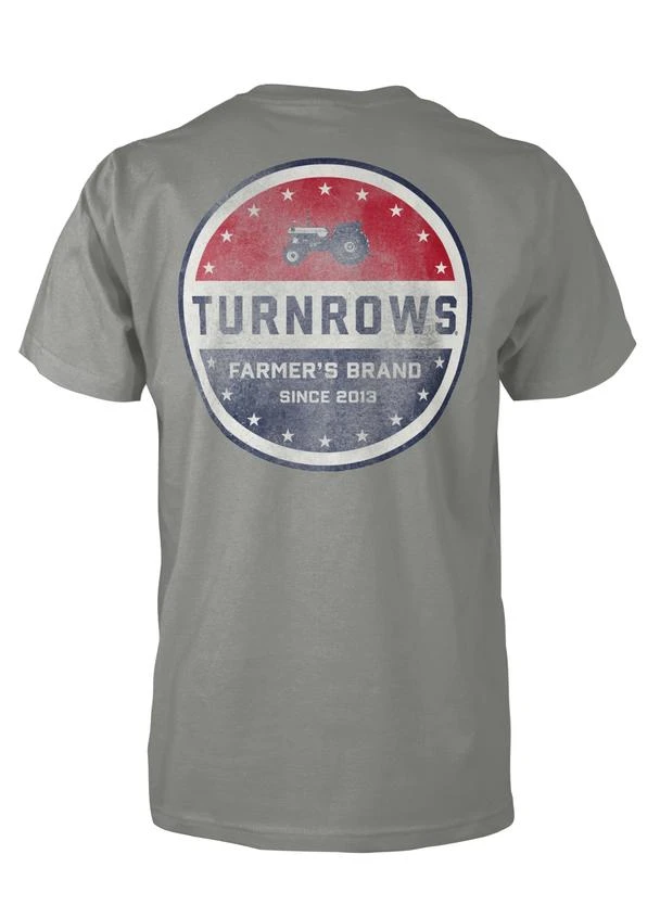 We love this great country of ours! Show your USA pride as well in this red, white and blue Turnrows t shirt.