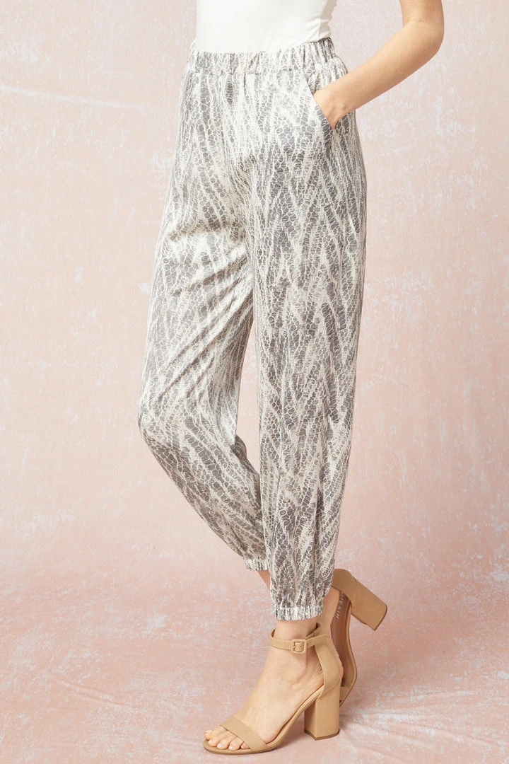 Joggers are now a girl’s best friend. Take these cuties from casual errands to date night in a flash! Joggers feature a super soft satin texture with a neutral tone print, making it super easy to style.