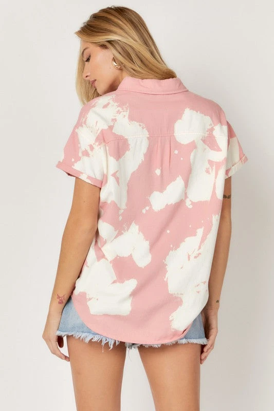 Blush cloud washed button down denim top