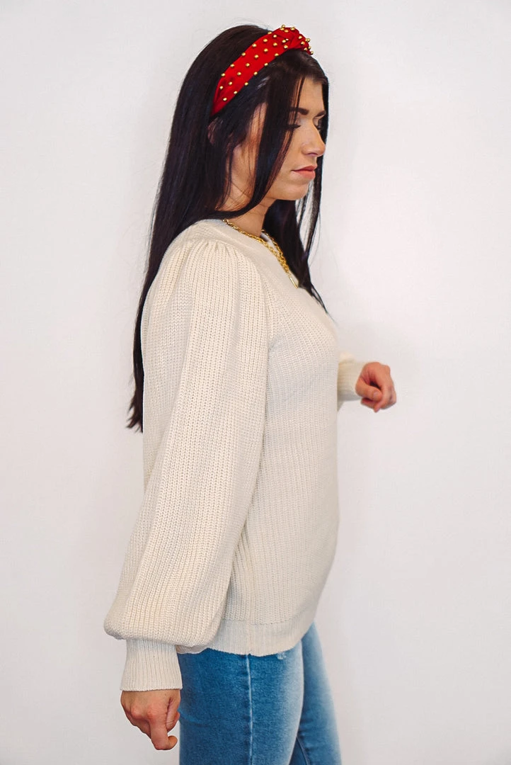 You’re sure to fall in love with this cozy ivory sweater! Featuring a crew neckline and long bubble sleeves. Such an adorable sweater for date nights or casual days out. The color is so pretty, and the fabric is perfect for the upcoming sweater weather!