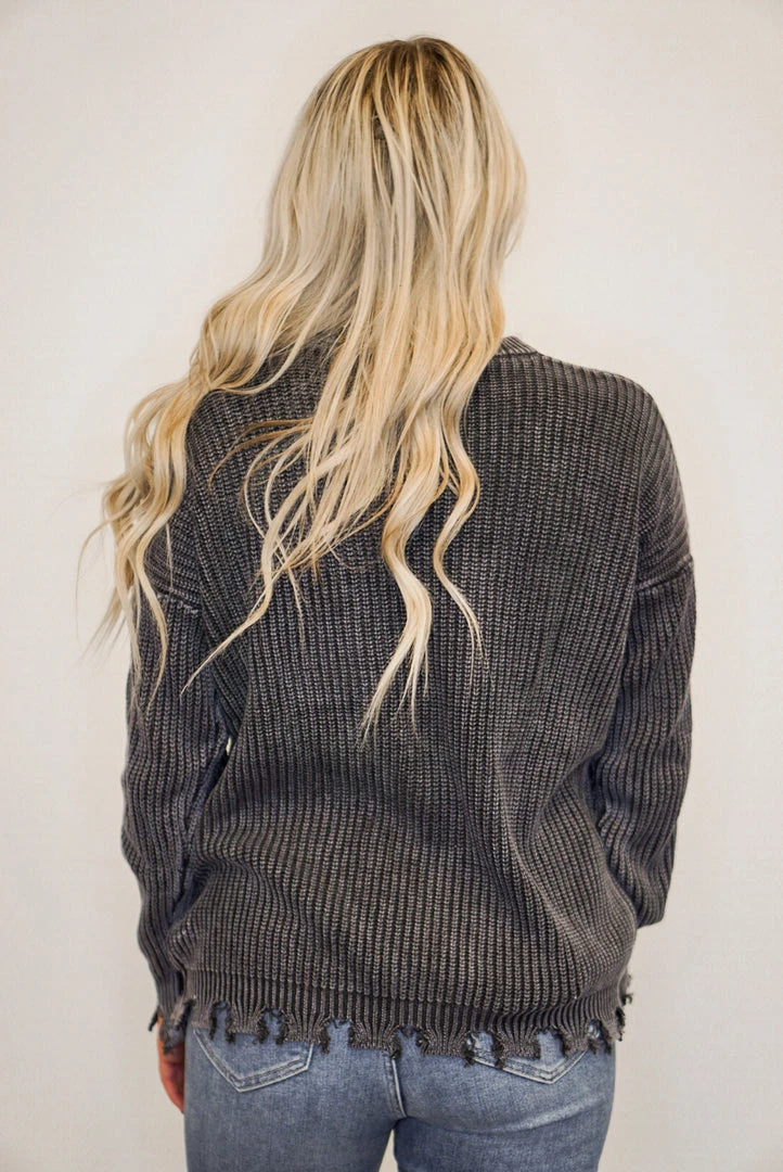 Mineral washed charcoal long sleeve sweater
