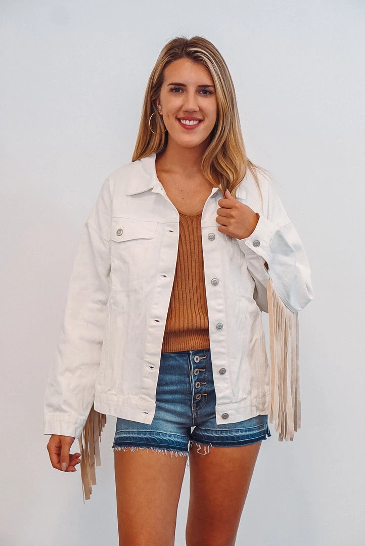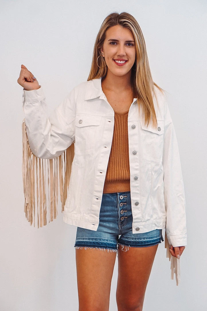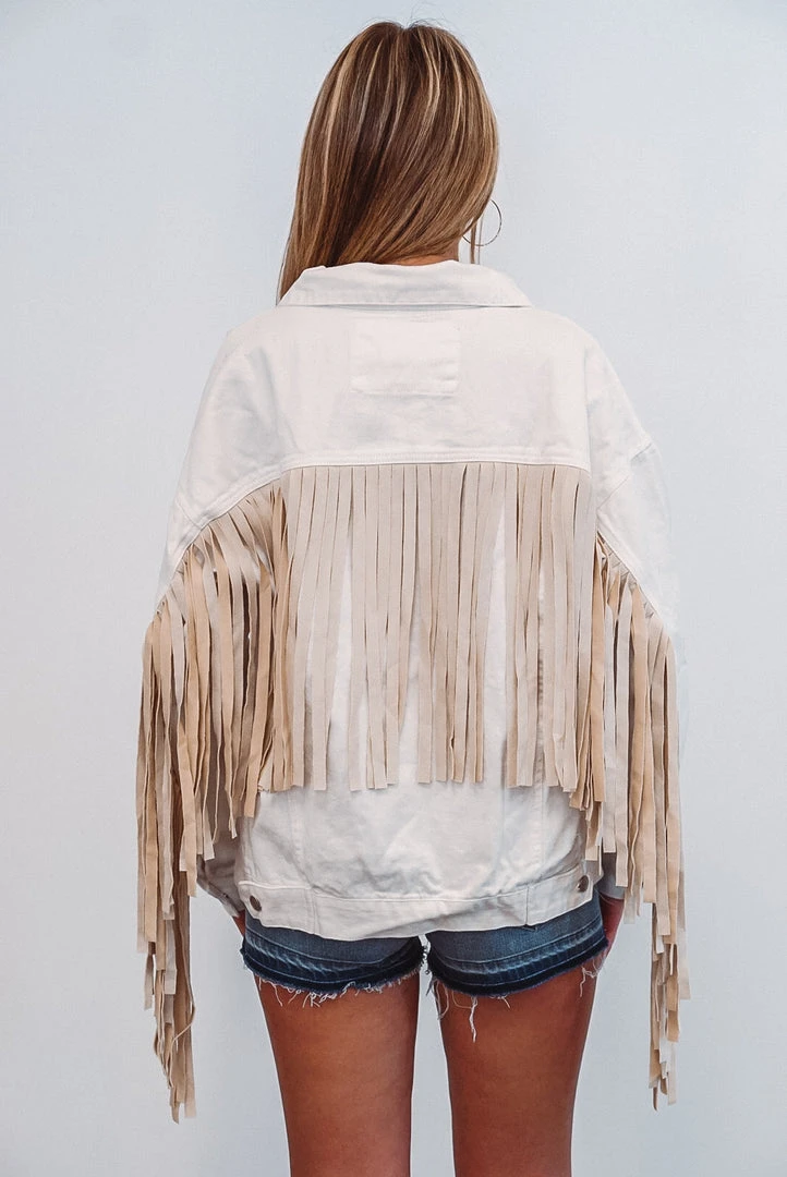 Ivory Denim Fringe Jacket