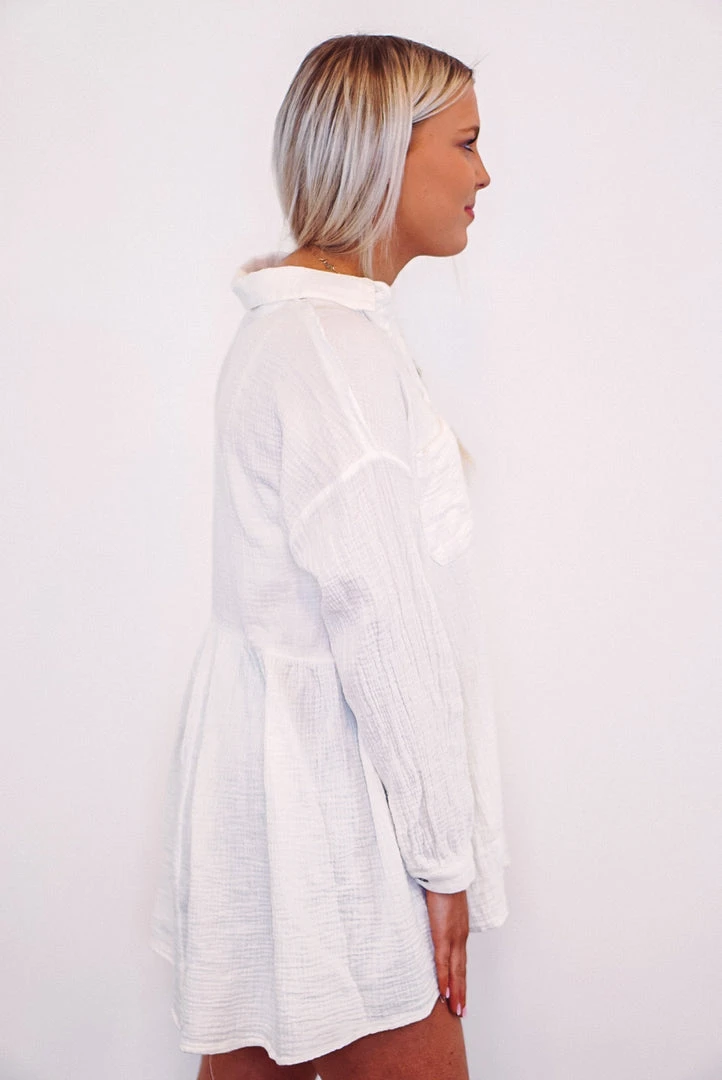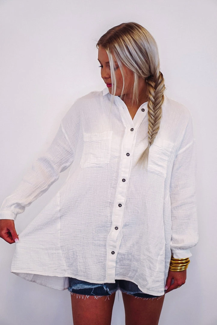 Off white button down crinkle gauze top