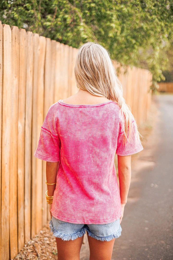 Mineral washed fuchsia pink waffle knit top