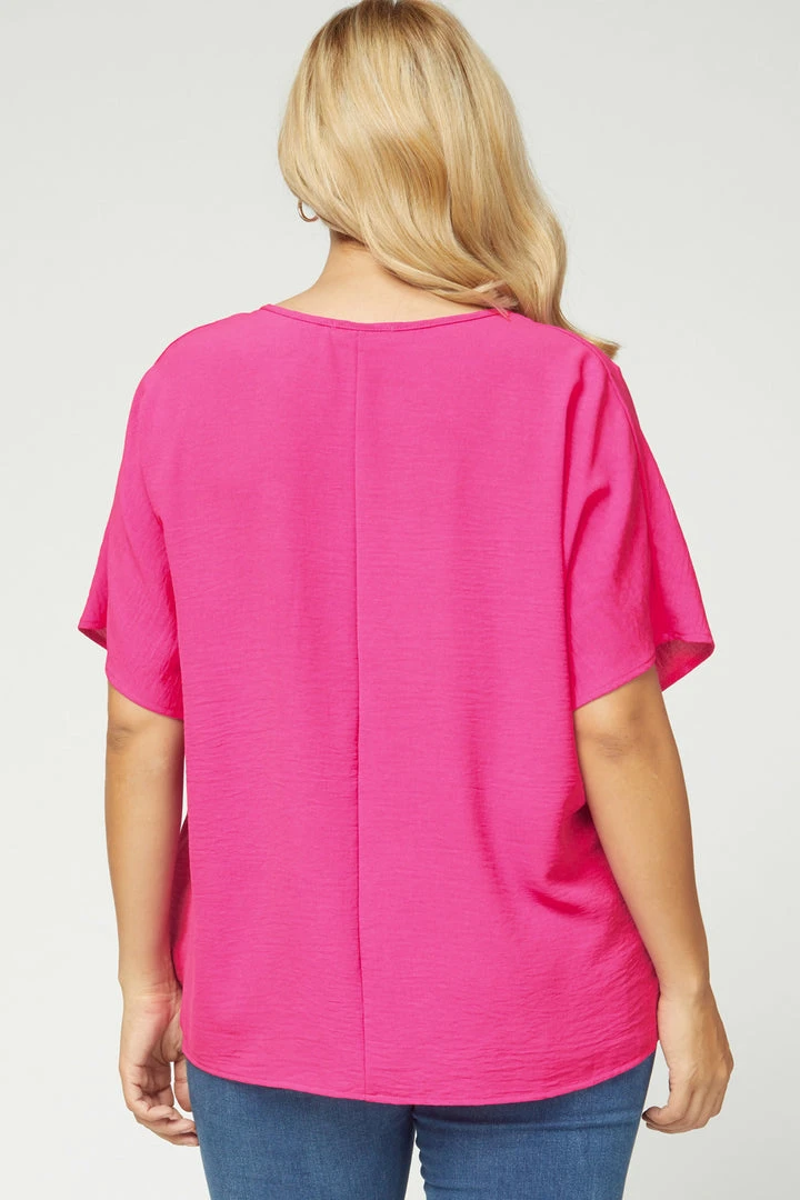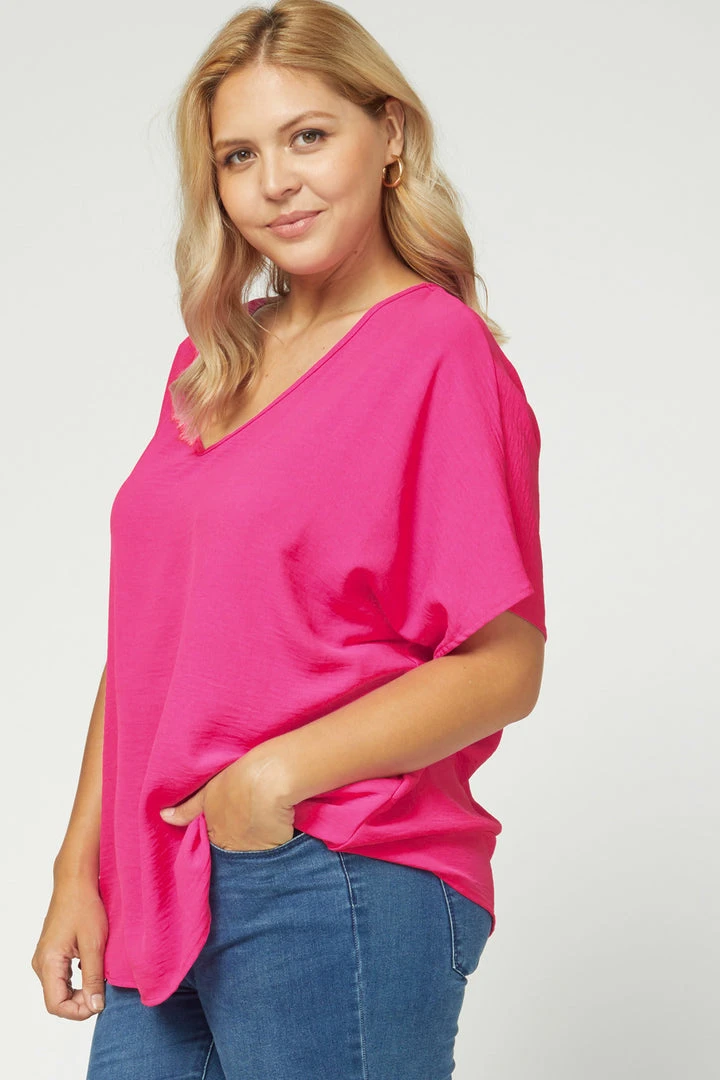 Hot Pink V Neck Oversized Top